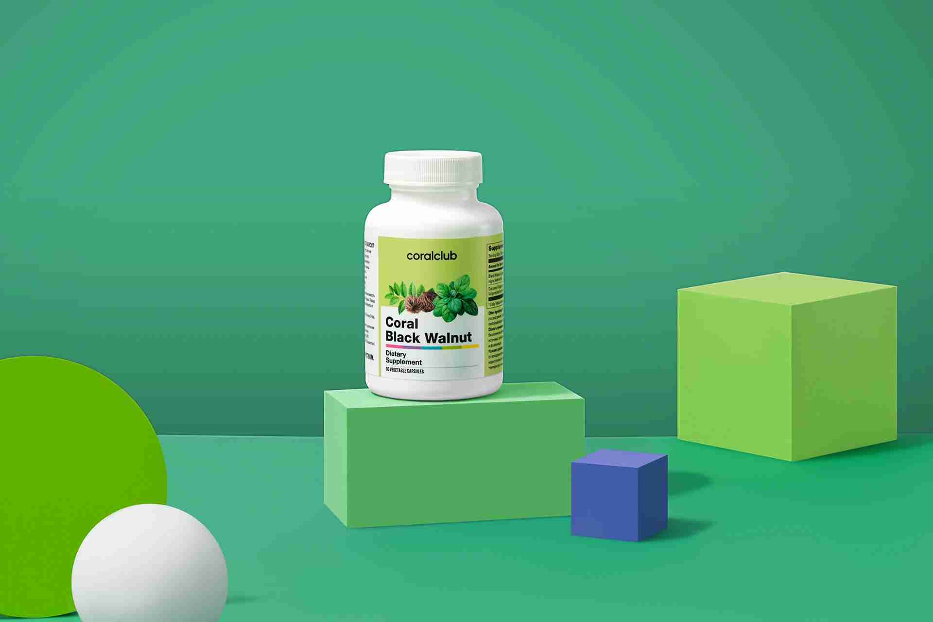 Melnā rieksta lapu ekstrakts 300 mg, oregano ekstrakts 50 mg, palīgsastāvdaļas.