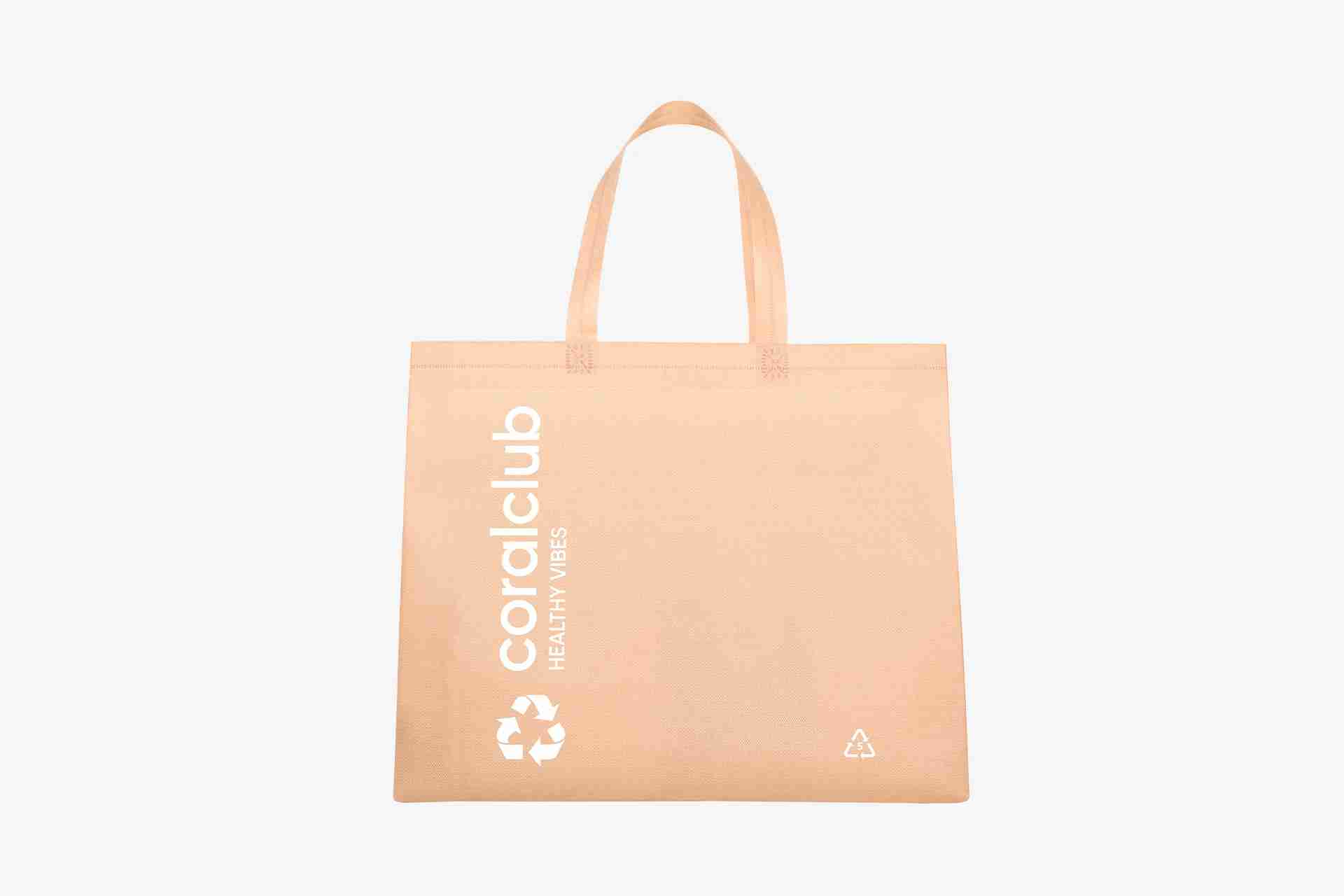 Izturīga, daudzreiz lietojama soma no spanbonda ar gariem rokturiem.